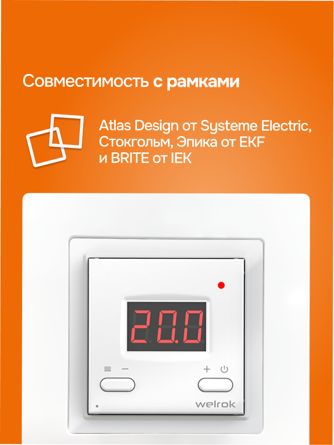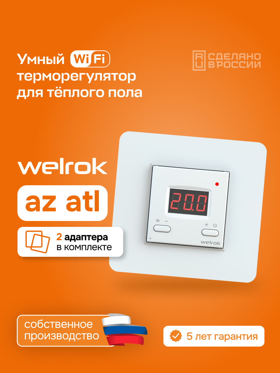 Умный терморегулятор Welrok az atl для управления теплым полом через смартфон или компьютер. Первый российский терморегулятор с геозонированием! 5 лет гарантии. Для установки в рамки «Atlas Design» от Systeme Electric, «BRITE» от IEK, а также в серии «Стокгольм» и «Эпика» от EKF. Удаленное управление с помощью фирменного приложения Используйте приложение Welrok и управляйте обогревом из любой точки мира. Приложение доступно в GooglePlay и AppStore, также есть браузерная версия. Welrok az atl — это комфортное управление нагревом в мобильном или web приложении Welrok. Удаленное управление обеспечивает мгновенный доступ к статистике и настройкам. Функционал приложения регулярно совершенствуется. Терморегулятор совместим с большинством датчиков температуры, что позволяет легко заменить устаревшую модель на Welrok az без замены датчика Геозонирование или geo-fence (Geofencing) Уникальная функция в приложении Welrok экономит деньги благодаря автоматическому снижению нагрева, когда дома никого нет. После активации функции геозонирования, терморегулятор Welrok будет учитывать геолокацию всех пользователей, которым был предоставлен доступ. Когда вы выйдете за выбранный радиус, Welrok уменьшит или отключит обогрев в зависимости от выставленных настроек. Когда вы вернетесь в выбранный радиус, терморегулятор установит комфортную температуру. Недельное расписание и функция “Отъезд” Подробная статистика потребления в кВт-часах и валюте Приложение Welrok предоставляет информацию о расходе электроэнергии в наглядных графиках, это помогает оптимизировать затраты. Добавьте свой тарифный план, чтобы видеть потребление в деньгах. Приложение позволяет выбрать двойной и тройной тарифы на электроэнергию Управление по локальной сети Меняйте настройки, используя локальную сеть, когда нет доступа к интернету. Интеграции Wi-Fi терморегуляторы Welrok можно интегрировать с вашей системой Умный дом через MQTT и http API.